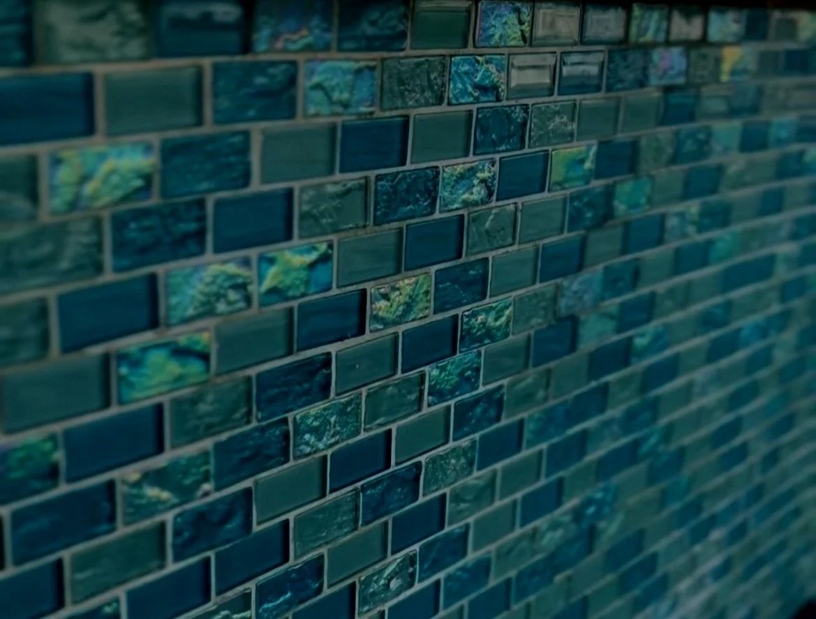 The visible surface of a cured gunite swimming pool is typically covered in plaster or tile, or some other “finished” material, to create a consistently even surface, texture, and color.